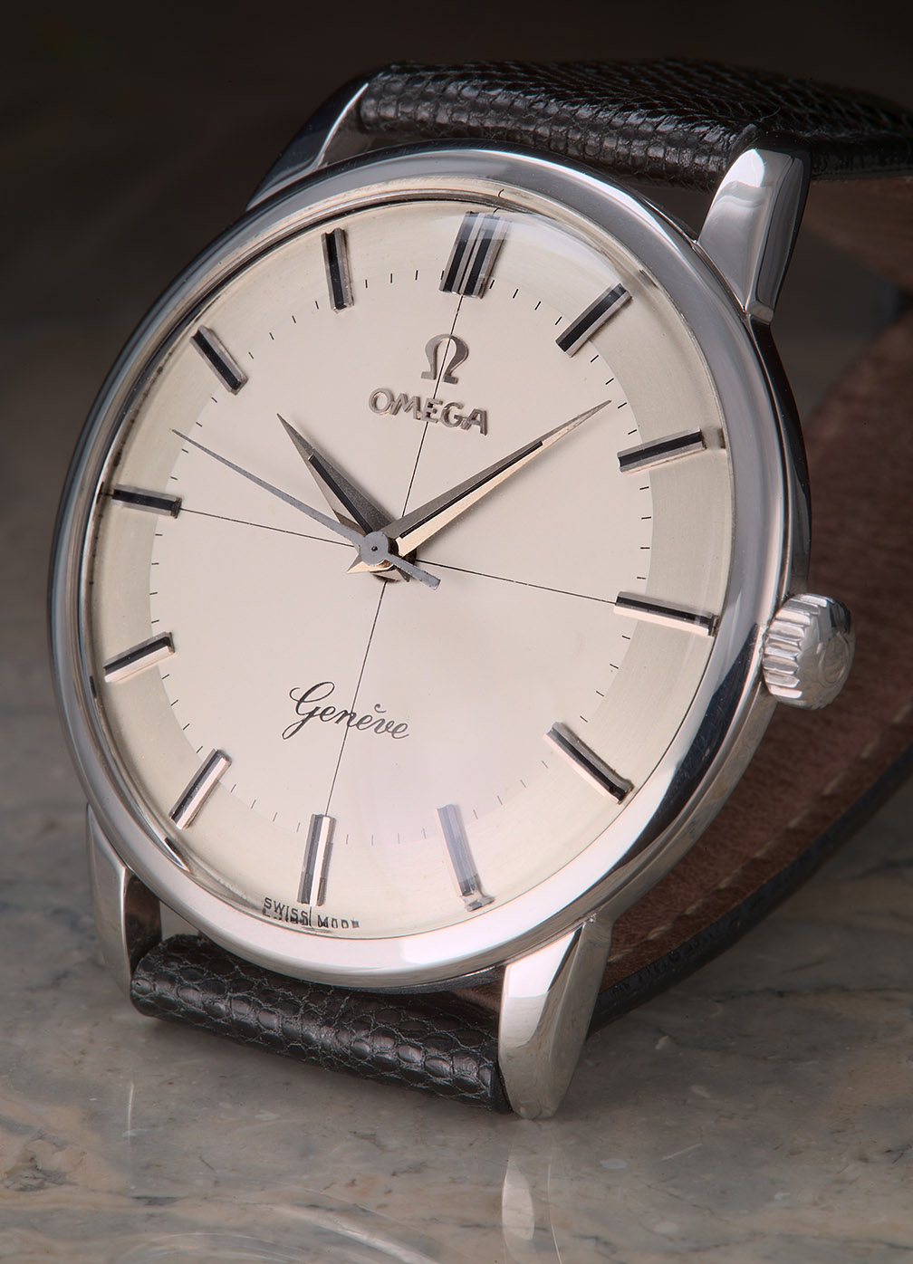 Typical of most vintage purchases, I received an aesthetically and mechanically excellent watch for my money, a wonderful, brushed silver, two-tone dial, applied and accented markers and matching hands, and a perfectly fine if workmanlike caliber 600 movement , exclusive to Omega and admirably well-finished according to the standards of the time. This watch is a reasonably modern 35.5mm diameter and so timelessly styled that a non-afficionado would have no particular clue as to its age. Even though I am now a great deal more educated about my watch than when I purchased it, it turns out that my initial impressions were just about right. My Omega Geneve is a pleasantly modest but high-quality watch, representative of its age and manufacture, as comfortable on the wrist today as it was forty years ago, but now much rarer.